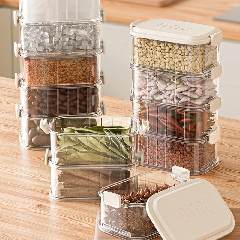 Stackable Spice Storage Boxes Plastic Seasoning Jar Multi-Layer Food Container Crisper Cereal Coffee Beans Sealed Organizers