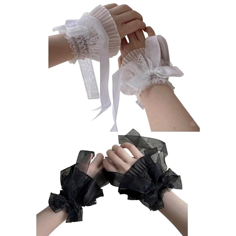 2PCS Elegant Lace Hand Sleeve Japanese Korean Style Wrist Cuffs For Cosplay And Photoshoot Comfortable Elastic Design