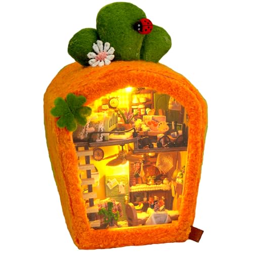 Moin Moin Dollhouse Miniature DIY Kit Set, Fluffy Animals, Carrot, Orange, Rabbit, Two-Story, Palm-Sized, Beginner-Friendly, Interior Design, LED Ligh