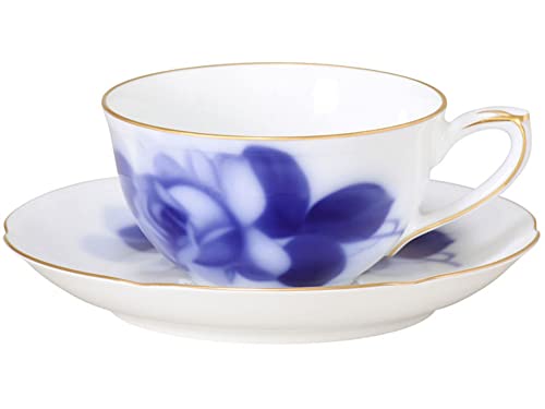 Okura Pottery Art Blue Rose Cup & Saucer, Coffee/Tea, Approx. 200cc, Made In Japan, 96C/8211