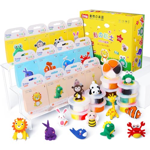 Zology 12-Piece Clay Set with Modeling Tools and Instructions, Animal Kingdom Air-Drying Colored Clay, Back-to-School Supplies, Children's Day Gift, H