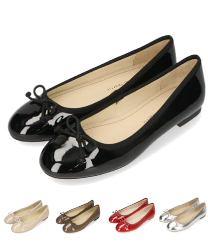 Women's Ballet Flats, Jumping Pumps, Cushioned, Round Toe, Ribbon, Available In Plus and Petite Sizes, Cute and Stylish, Black, R-4006
