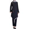 Tops: Long sleeves, round neckline, and irregular hemline design.