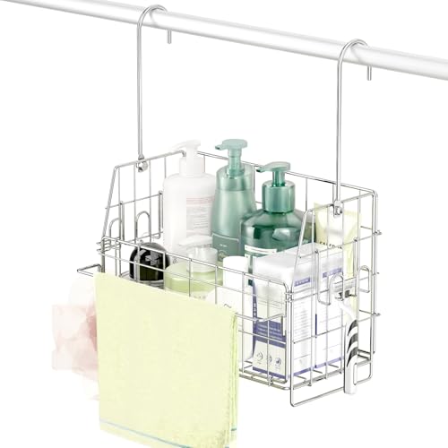 [Large Storage Capacity] PAVSTINE's hanging bath basket rack allows for floating storage in the bathroom. The spacious storage space allows you to store shower gels and shampoos for the whole family in one place, as well as facial cleanser, body lotion, and children's toys. Hanging storage also helps remove sticky liquids from the bottom of bottles, keeping your bathroom fresh. The front bar can be used to hang towels and other items. Small hooks on both sides can be used to hang small items like shower balls, laundry bags, and razors, freeing up storage space even in small bathrooms.