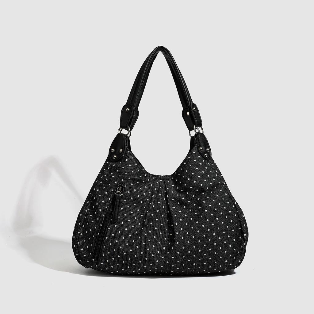 2025 New Collection: Retro Polka Dot Hobo Tote Bag - Large Capacity Street Style Shoulder Bag for Women