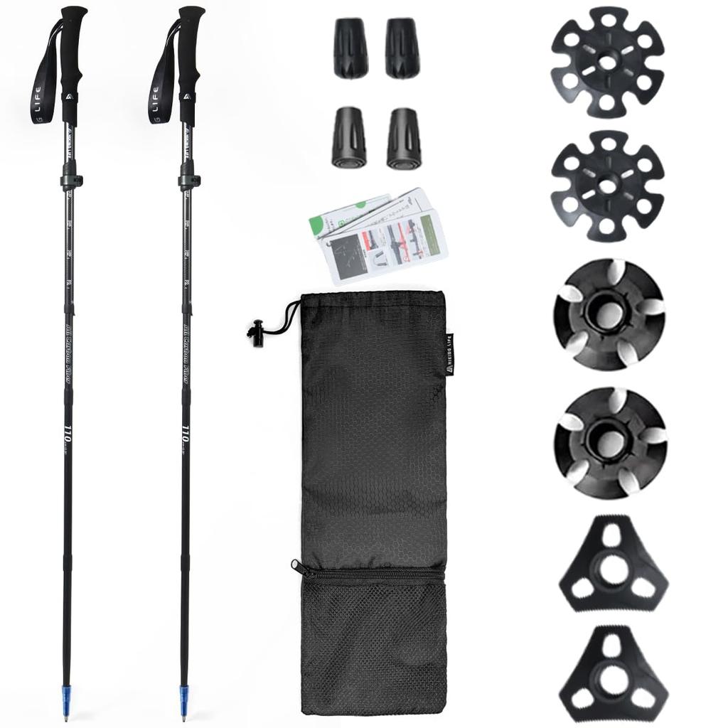 [5 Types of Attachments Included - Suitable for Diverse Terrains] The included removable basket allows for versatile use on a wide range of terrains, from well-maintained paths to rocky areas, muddy trails, and deep snow. The included trekking pole caps allow for easy switching between attachments depending on the terrain. Five different attachments are included to enhance stability and safety on various surfaces. Designed for comfortable use by beginners and advanced hikers alike.