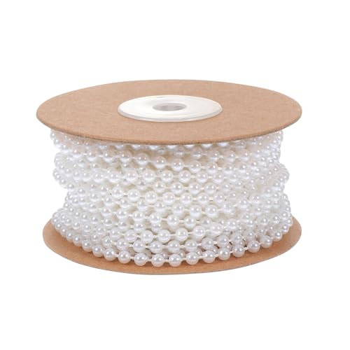 EXCEART Artificial Pearl Chain, Beaded Chain, Pearl Braid Chain, Obi-jime, 4mm Pearls, White Pearls, Craft Decoration, Pearl Garland, 10m, DIY, Handma