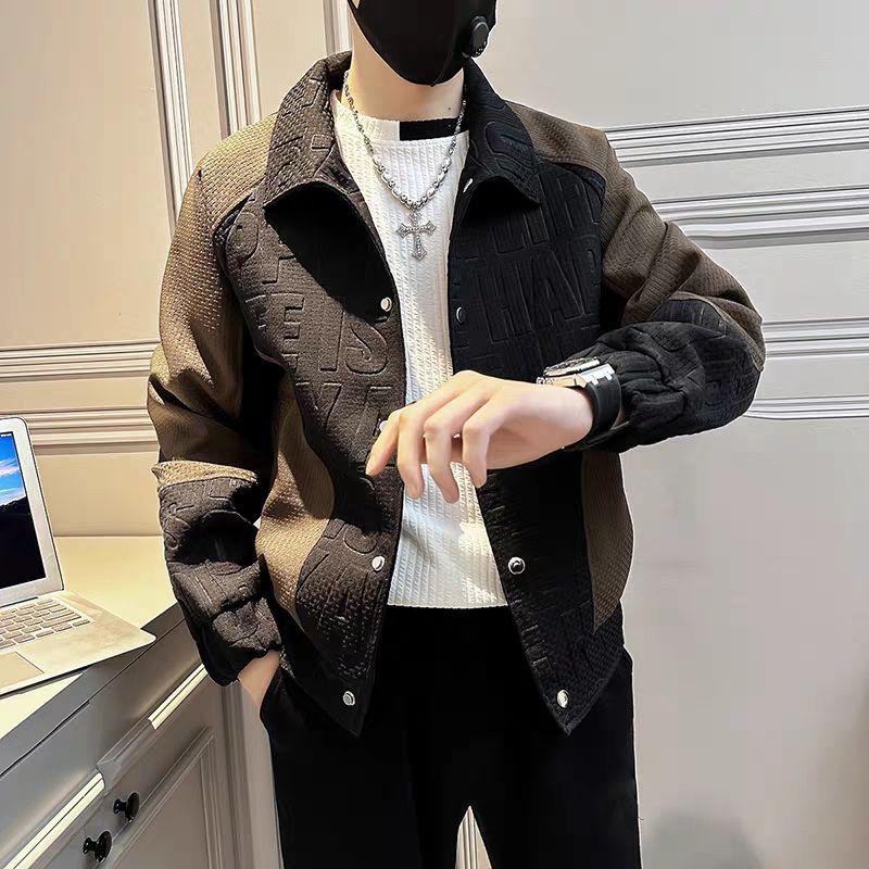 Fashionable Letter Patchwork Jackets Men's Clothing Contrasting Colors Autumn Winter Turn-down Collar Casual Button Loose Coats