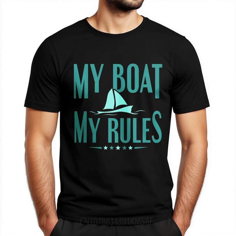 Man Brand Tshirt Daily Wear Summer Women Tshirt My Boat My Rules Sailboat Design Short Sleeve Solid Color Crew Neck Tshirt