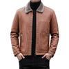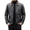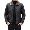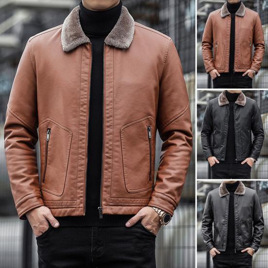 Men Imitation Leather Jacket with Velvet Lining Lapel Long Sleeve Zipper Placket Solid Color Autumn Winter Coat