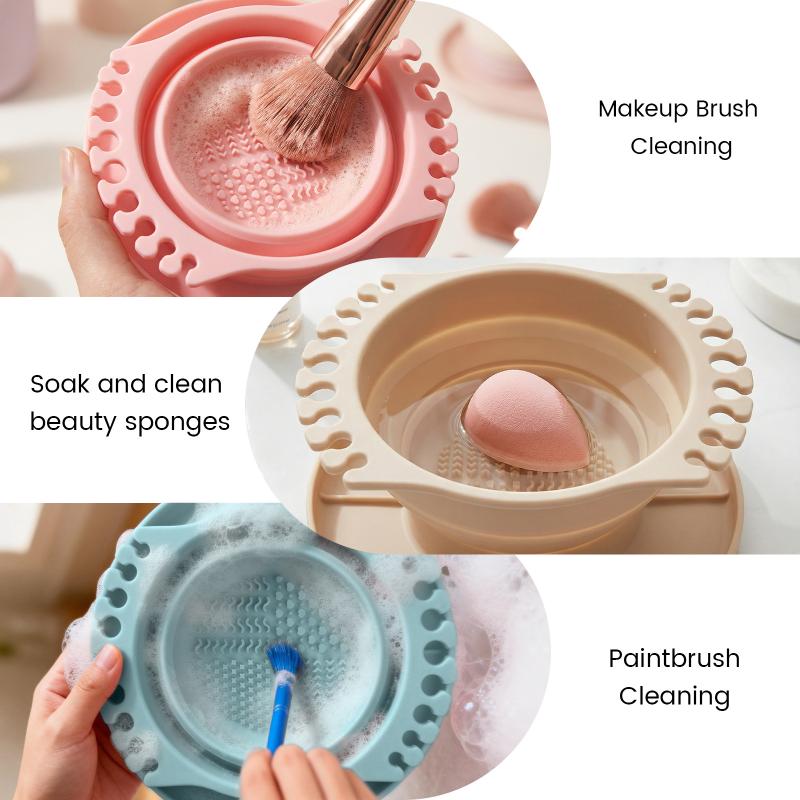 3 In 1 Makeup Brush Cleaner Silicone With Brush Holder Powder Puff Cleaning Bowl Folding Makeup Brush Cleaning Box Travel