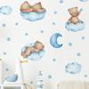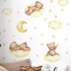 Cartoon Blue Teddy Bear Moon Wall Stickers For Kids Room Baby Nursery Decor Bedroom Wall Decals