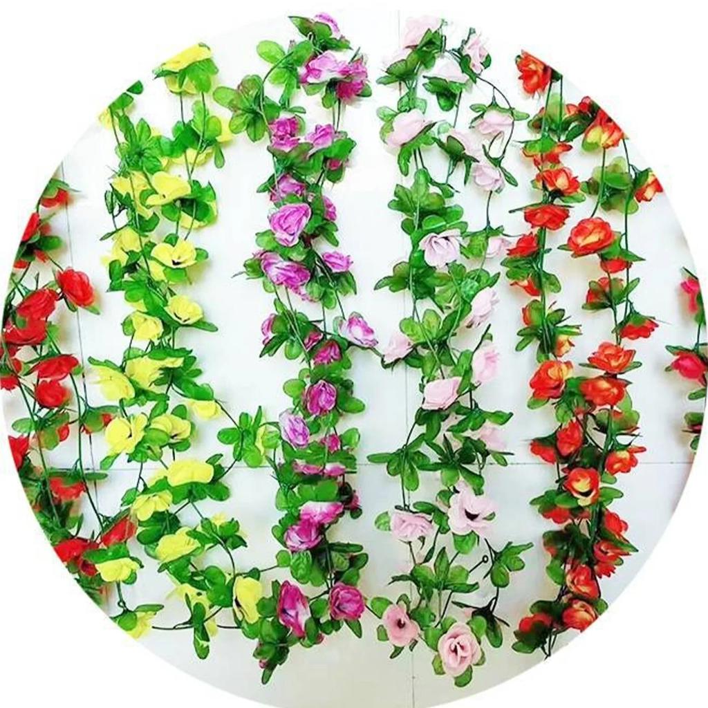 40 Heads Simulated Rose Flower Vine Hedge Living Room Wedding Decoration Wall Hanging Simulated Flowers Rattan 8pcs 230cm