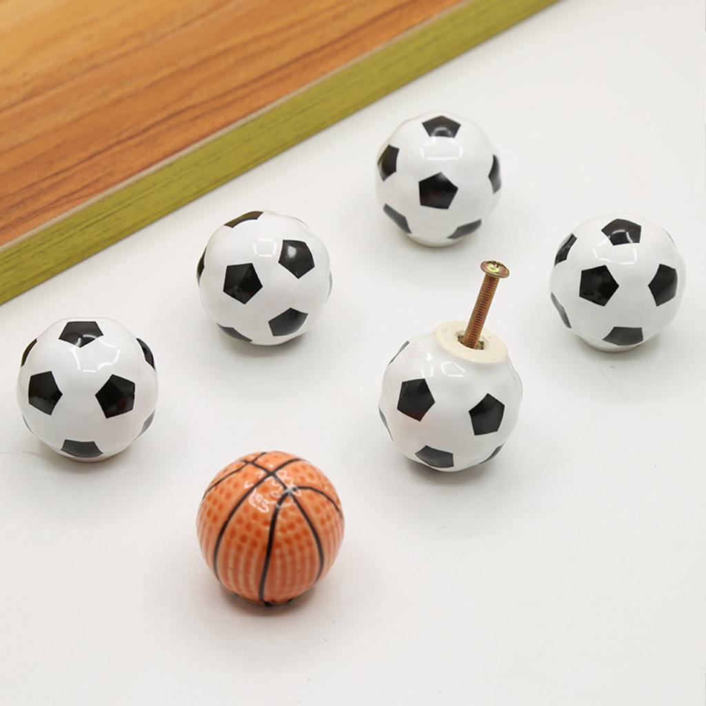 4PCS/SET Cabinet Door Handle Soccer Basketball Football Children’s Room Cute Ceramic Handle Cartoon Drawer Single-hole Handle