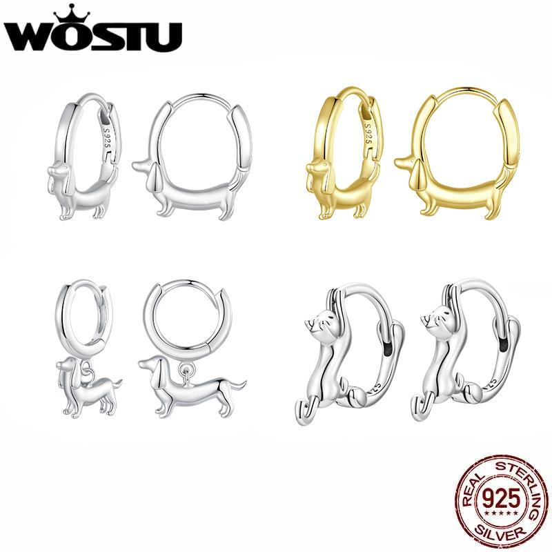 WOSTU Snake Dog Cat Ear Buckles Women 925 Silver Dachshund Hoop Earrings Girl Party Birthday Gift Minimalism Jewelry