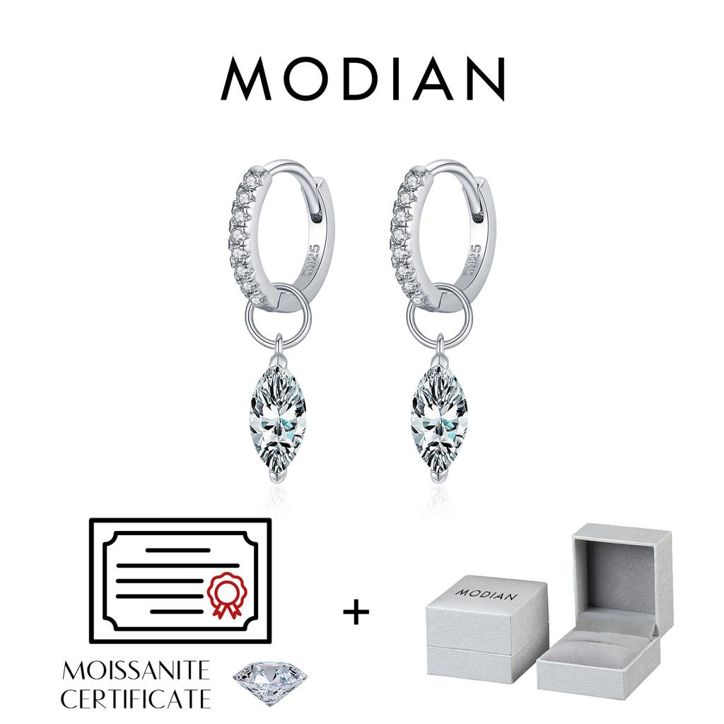 MODIAN 0.5Ct D Color Rhombic Moissanite Ear Buckles 925 Silver Luxury Shiny Hoop Earrings for Women Wedding Jewelry