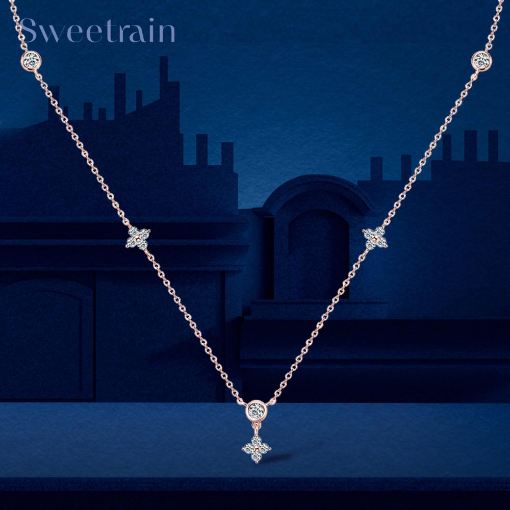 Rose Gold Four Leaf Clover Moissanite Necklace 925 Silver Plated 18k Yellow/White Gold Diamond Choker Chain for Women Jewelry