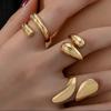 9Pcs/set Gold Color Smooth Geometric Open Rings Set for Women Men Exaggerated Metal Irregular Adjustable Rings Jewelry Gifts