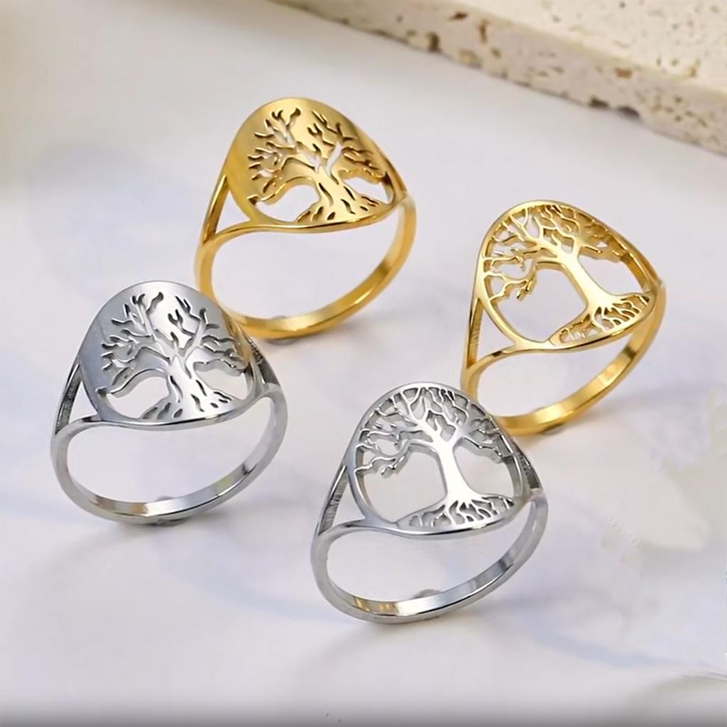 Stainless Steel Tree of Life Ring for Women Vintage Amulet Finger Rings Jewelry Mother's Day Gift