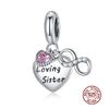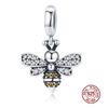 WOSTU 925 Silver Animal Cat Charm Pendant Heart Family Ladybug Bee Beads Fit Original Bracelet DIY Jewelry For Women