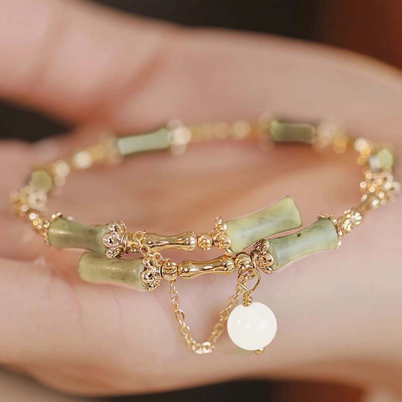 Trend Green Jade Bamboo Joint Bracelet for Women Men Romantic Lily of the Valley Pendant Chain Party Gift Fashion Jewelry