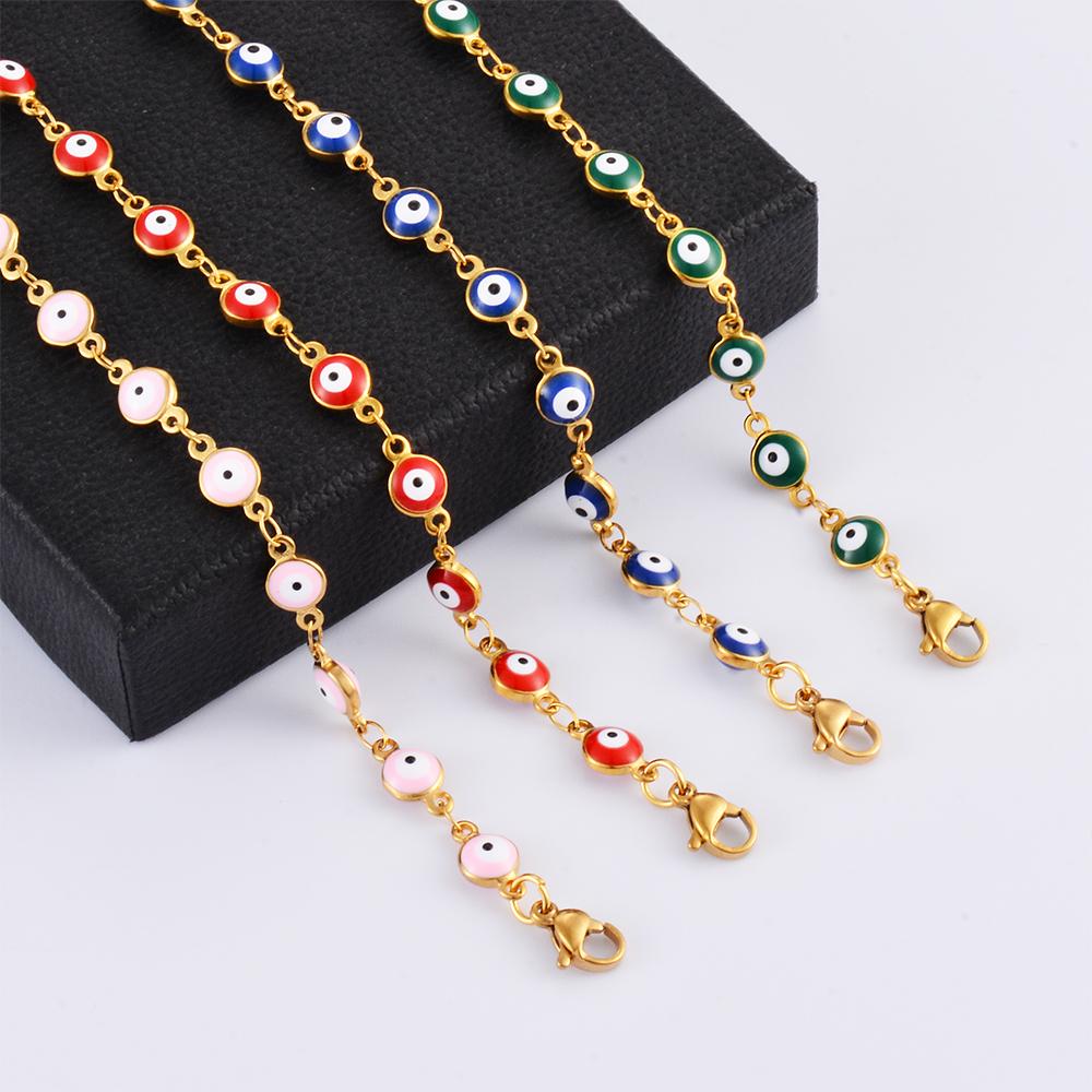 Stainless Steel Bracelets Blue Red Evil Eye Enamel Bead Bracelet For Women Lucky Turkish Eye Jewelry Gifts