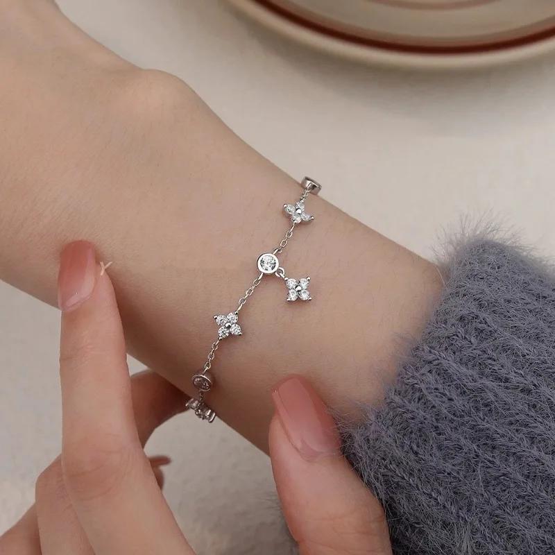 Silver Plated Clover Bracelet with Sparkling Cubic Zirconia Delicate Elegant Jewelry for Women Ideal Gift for Any Occasion