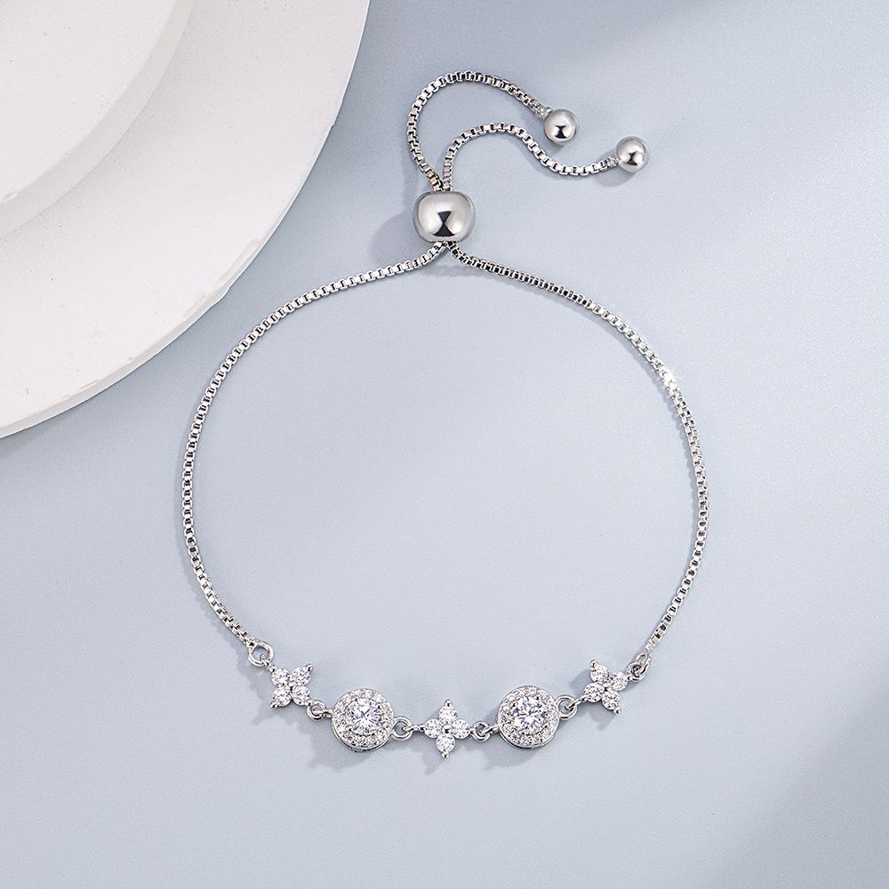 925 Silver Bracelet Four-leaf Round White Zircon Ladies Fashion Simple Birthday Party Wedding Anniversary Jewelry Gift