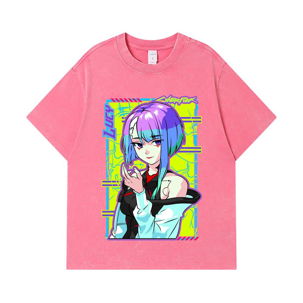 275 GSM Washed T-shirts 100% Cotton Cyberpunk Edgerunners V8 Lucy Print Unisex Heavy Cotton T Shirt