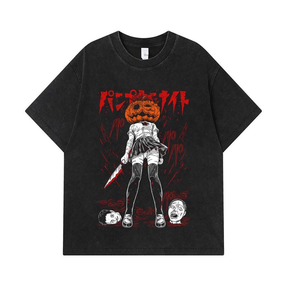 275 GSM Washed T-shirts 100% Cotton Pumpkin Night V2 Print Unisex Heavy Cotton T Shirt