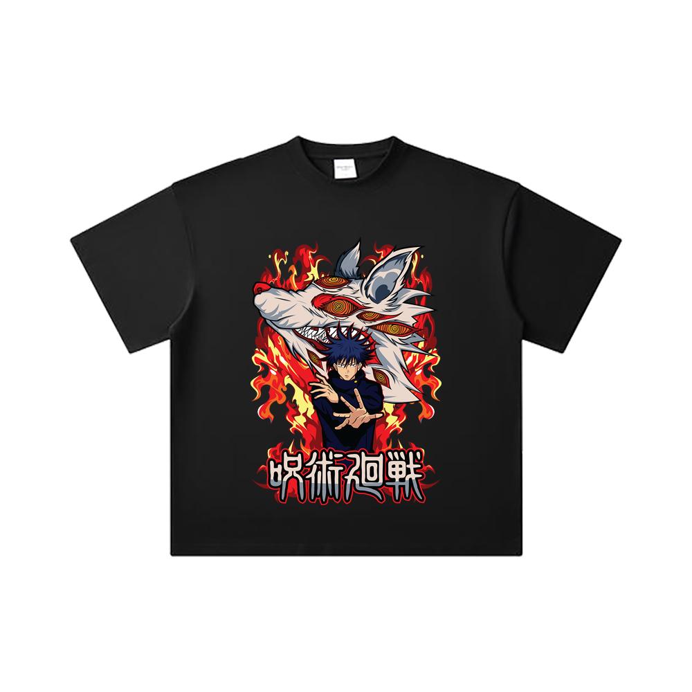 260 GSM Double Yarn 32 Count 100% Cotton Jujutsu Kaisen V7 Megumi Print Unisex Heavy Cotton T Shirt