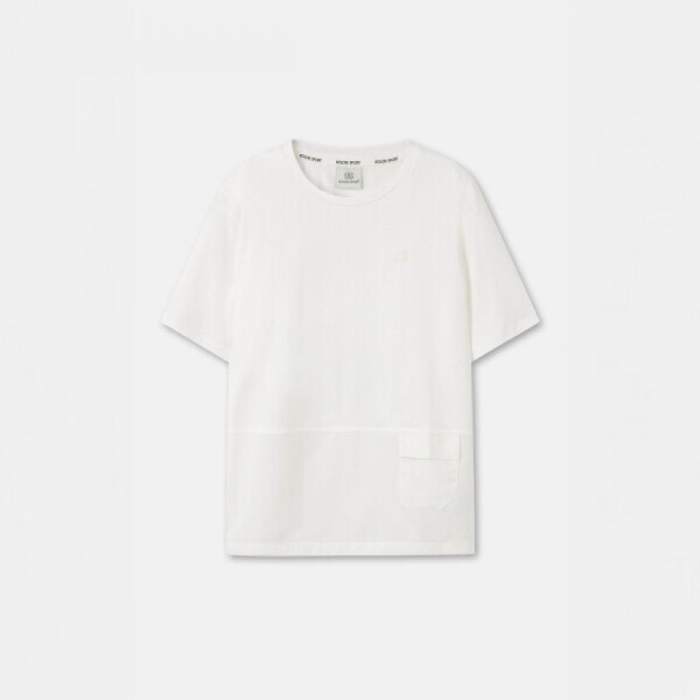 The KOLON SPORT Women's Hybrid Short Sleeve Round T-Shirt is made from a blend of cotton and polyester. It features a cool and lightweight wearing feel, and its basic round neck design makes it suitable for comfortable everyday wear. The color is Linen, making it a fitting item for various outdoor activities.