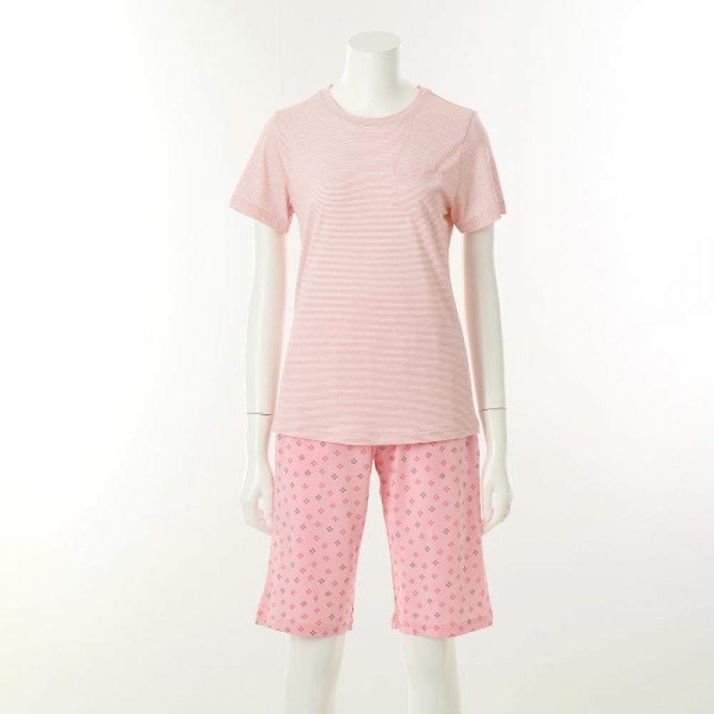 Wakoru's soft rayon women's pajama set features a cooling touch suitable for summer. The top is made from rayon linen-poly fabric, providing excellent moisture absorption and a refreshing feel without clinging to the body. The bottoms are crafted from soft rayon fabric with a simple square print design.