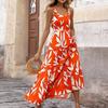 Women's Elegant Suspender Floral Print Midi Dress
