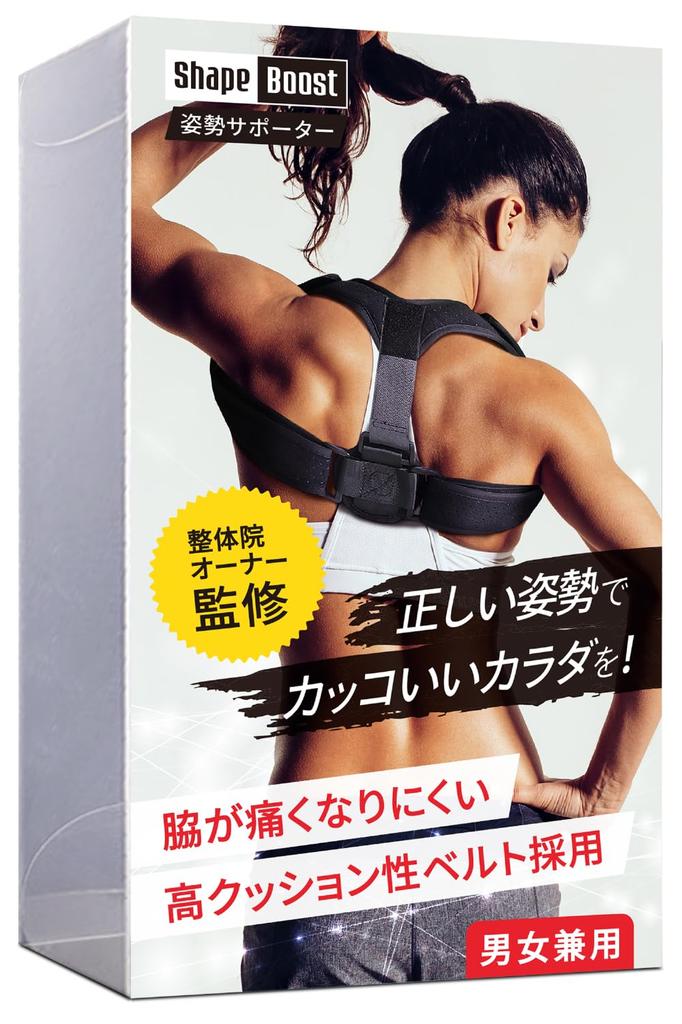 ① [Get a cool body with proper posture!] Modern people tend to have poor posture, such as hunched backs and rounded shoulders, due to the long hours spent using computers and smartphones. Even if you consciously correct your posture, it often returns to its original state, making it difficult to maintain good posture. That's why the Shape Boost posture supporter was developed under the supervision of chiropractic clinic owner Kunitoshi Yukawa. Wearing it helps to pull your shoulder blades together, stick out your chest, and straighten your spine, helping you achieve good posture. ② [Highly cushioned belt to prevent armpit pain] Traditional posture supporters often cause armpit pain, making them difficult to wear for long periods of time. Shape Boost improves on this issue by using a thick, highly cushioned belt. This makes it comfortable to wear and allows for continuous wear without strain. ③ [Easy to wear, anytime, anywhere] The Shape Boost posture supporter can be worn while working, using your smartphone, watching TV, playing games, doing housework, and more, without taking up any additional time. Start with 10 minutes.