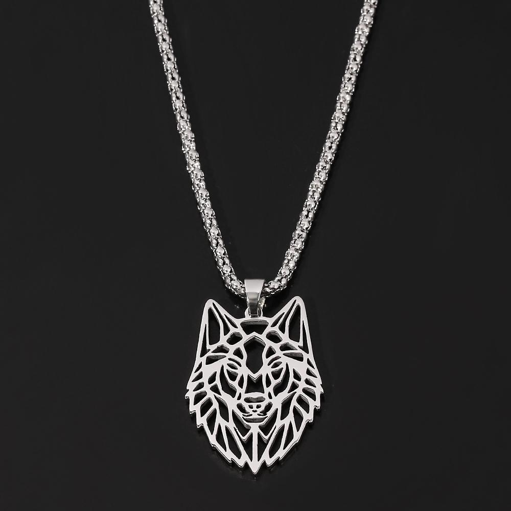 Hollow Wolf Head Pendant Necklace For Men Silver Stainless Steel Punk Long Chain Jewelry