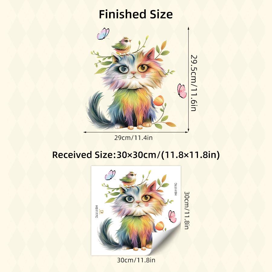 Cartoon Watercolor Cat Bird Butterfly Wall Stickers, Self-Adhesive Decor for Bedroom Kids Room Kitchen Decoration