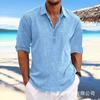 Men's Solid Color Shirt Linen Lapel Long Sleeve Casual Breathable