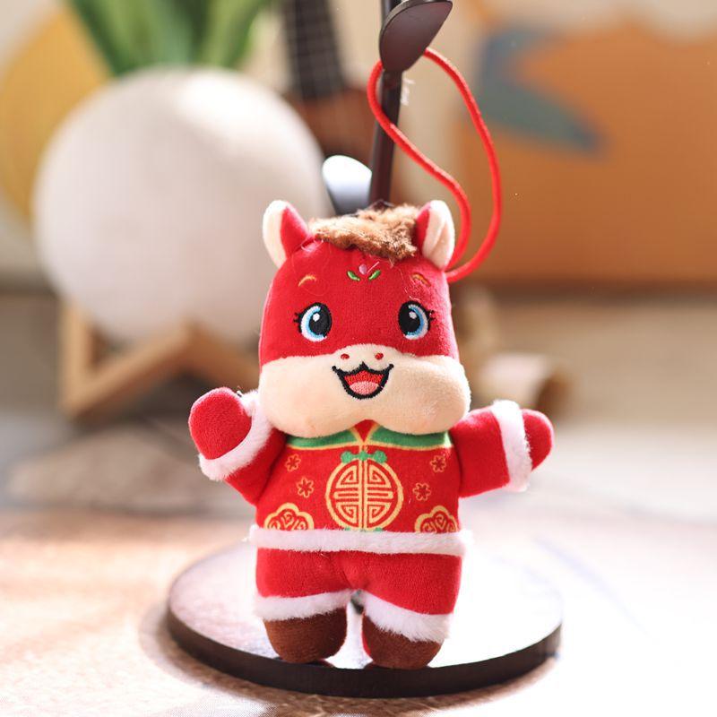 Year Of The Horse Mascot Keychain Delicate Cute Cartoon Tang Suit Mini Zodiac Horse Plush Doll Pendant Bag Decoration Gift