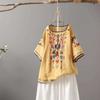 Ethnic Style Cotton and Linen Embroidered T-shirt Women's Round Neck Short-sleeved Casual Retro Hemmed Art Top