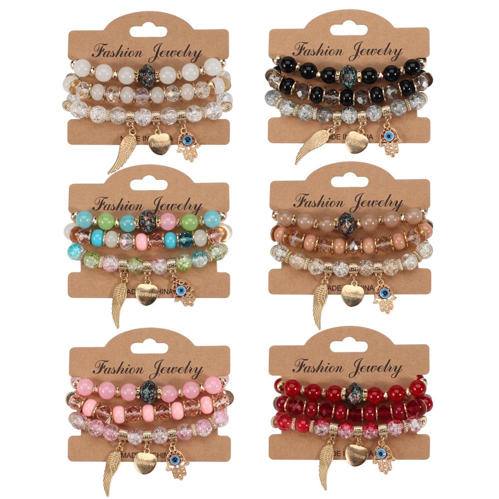 Bohemian Multi-layer Elastic Bracelet Devil's Eye Wings Love Glass Bead Bracelet New Bracelet