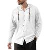 Men's Simple Cotton and Linen Casual Loose Breathable Long-sleeved Solid Color Hooded Shirt