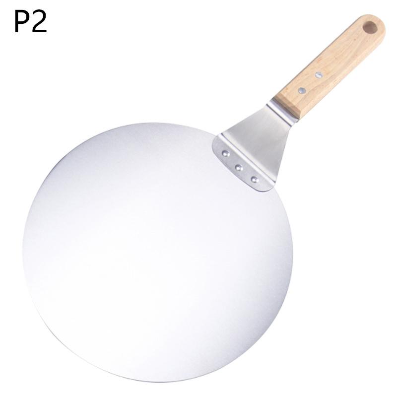 1Pc Pizza Shovel Pastry Tools Accessories Pizza Peel Round Stainless Steel Non-Stick Pizza Paddle Spatula With Oak Wooden Handle