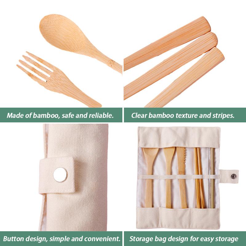 Wooden Spoons And Chopsticks Bamboo Cutlery Set Bamboo Knife Fork And Spoon Student Cutlery, Outdoor Wooden Portable Set