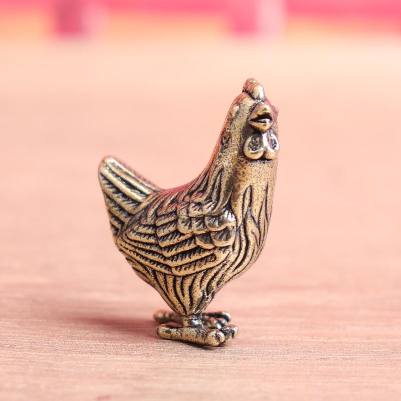 Solid Brass Hen Small Statue Desktop Ornaments Vintage Zodiac Animal Figurines Model Lucky Home Decorations Crafts Accessories
