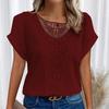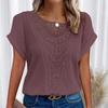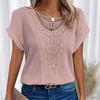 Lace Splicing Crew Neck T-shirt Casual Short Sleeve Top for Spring & Summer Women's Clothing