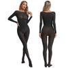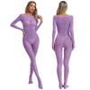 Womens See Through Elastic Footed Bodysuit Long Sleeve Silky Jumpsuit