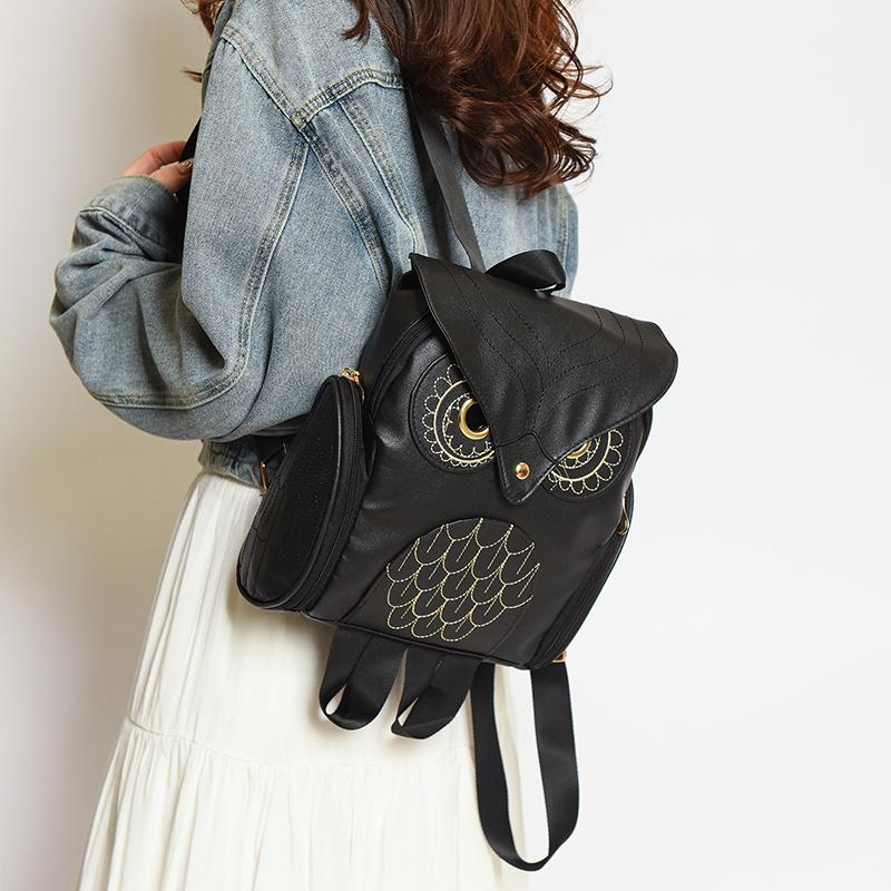 Women Backpack Stylish Cool Black PU Leather Owl Backpack Female Women Bag Bagpack for Girls