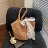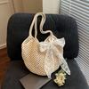 Summer Lace Bow Tote Bags Women Raffia Knitting Woven Shoulder Bag Rattan Large Casual Crochet Shopping Bag Ladies Handbag
