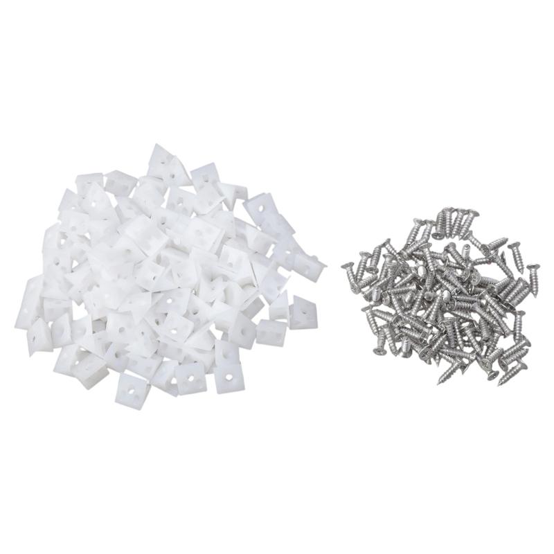 100/150Pcs Drawer Wedges with Screws Drawer Angles Code Bracket Fastener Fixing Mending Wedges for Repair Cabinets